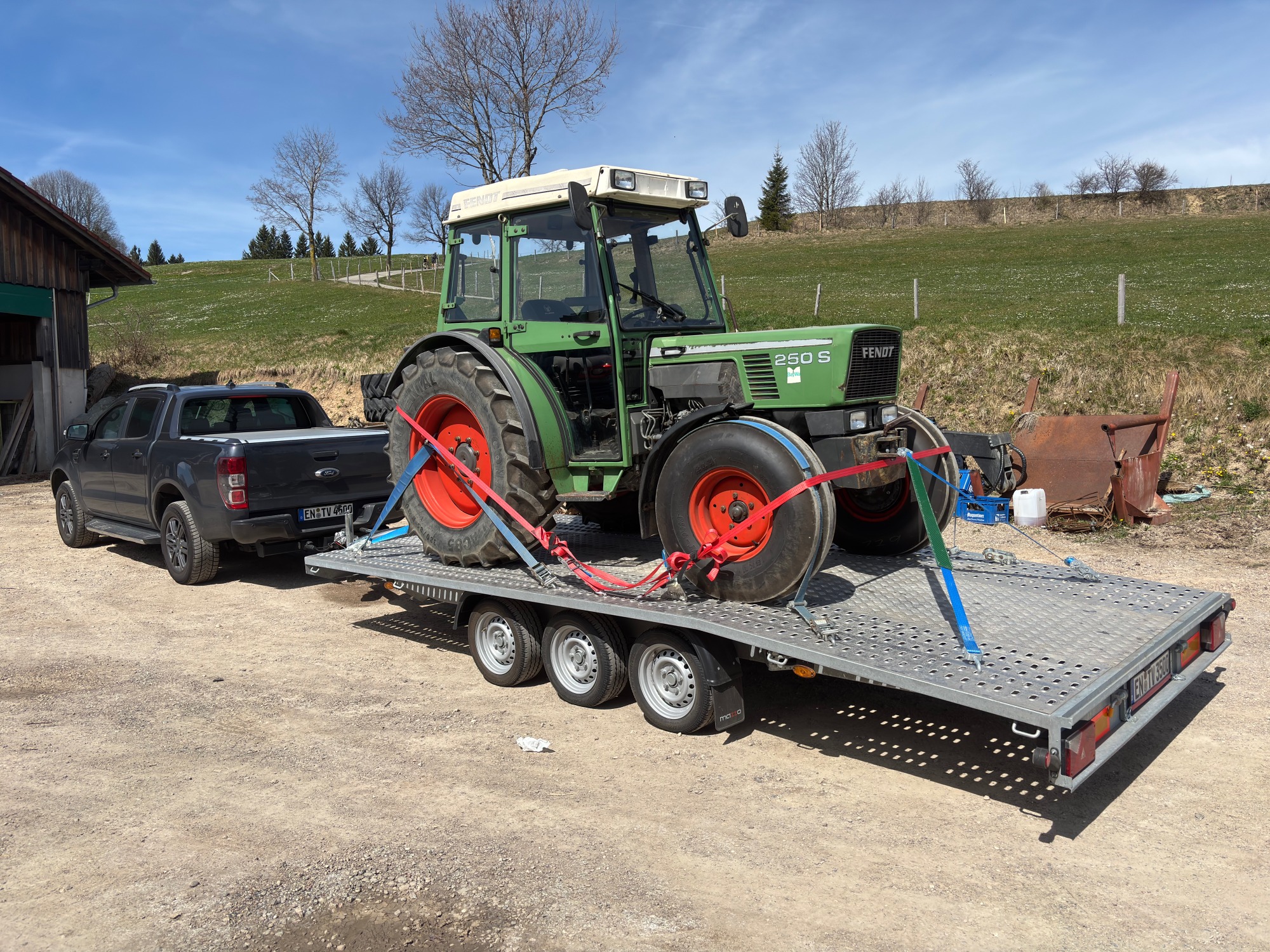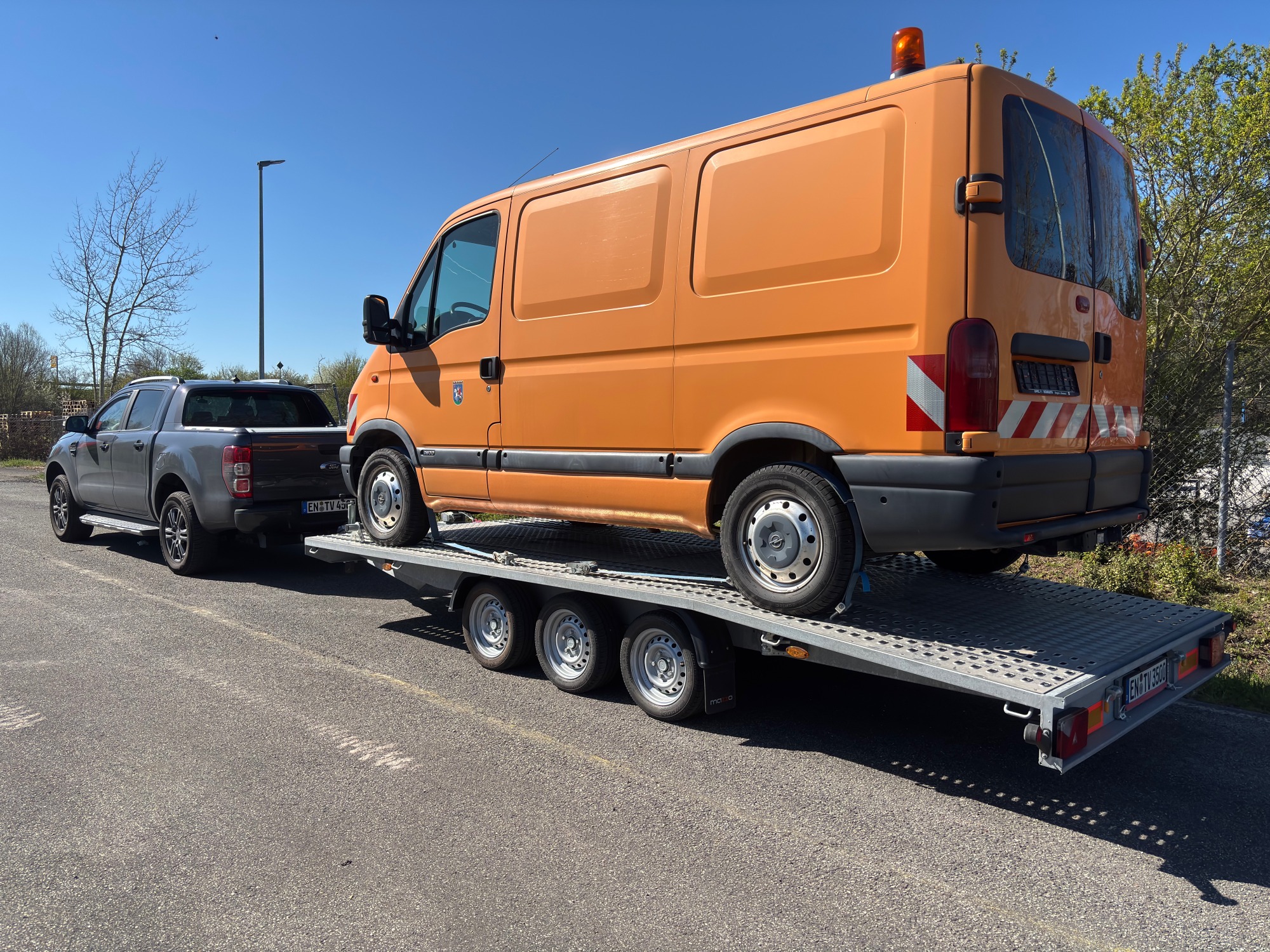 Auch nicht fahrbereite Fahrzeuge und schwere Anhänger werden dank moderner Seilwinde und Radroller fachgerecht verladen, gesichert und überführt.